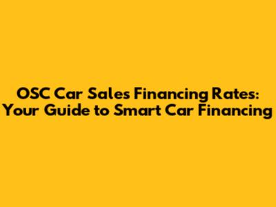 OSC Car Sales Financing Rates: Your Guide To Smart Car Financing