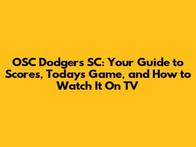 OSC Dodgers SC: Score, Today's Game, And TV Info