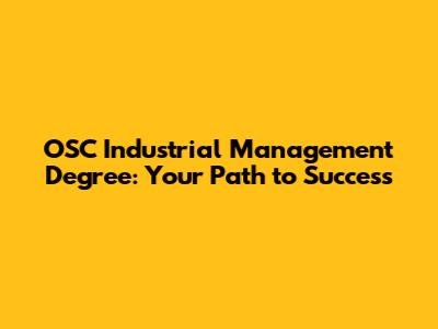 OSC Industrial Management Degree: Your Path To Success