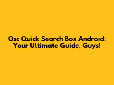 Osc Quick Search Box Android: Your Guide
