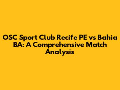 Hey guys! Let's dive deep into the exciting world of Brazilian football, specifically focusing on the clash between OSC Sport Club Recife PE and Bahia BA. This match-up is always a treat for fans, and we're here to break down everything you need to know before the whistle blows. From team stats and player performance to tactical analysis and predictions, we'll cover it all. So, grab your snacks, settle in, and get ready for a detailed look at this anticipated match!