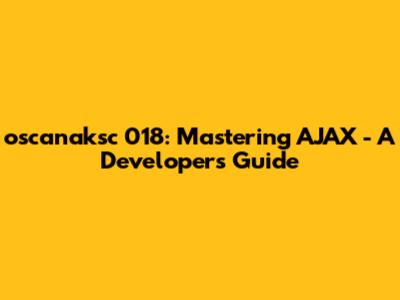 Oscanaksc 018: Mastering AJAX - A Developer's Guide