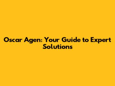 Oscar Agen: Your Guide To Expert Solutions