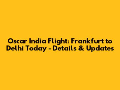 Oscar India Flight: Frankfurt To Delhi Today - Details & Updates