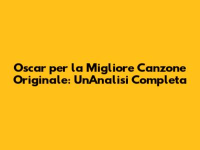Oscar Per La Migliore Canzone Originale: Un'Analisi Completa