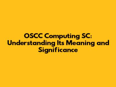 OSCC Computing SC: Meaning And Significance