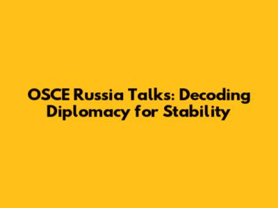 OSCE Russia Talks: Decoding Diplomacy For Stability
