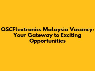 So, if you're looking for a company that values innovation, offers growth opportunities, and fosters a collaborative culture, then keep reading, because the OSCFlextronics Malaysia vacancy could be your golden ticket.