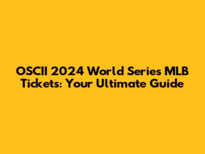OSCII 2024 World Series MLB Tickets: Your Ultimate Guide