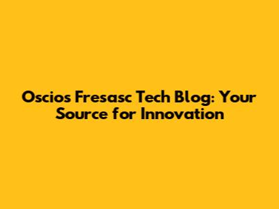 Oscios Fresasc Tech Blog: Your Source For Innovation