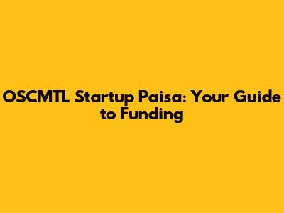 OSCMTL Startup Paisa: Your Guide To Funding