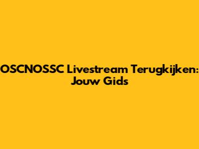 OSCNOSSC Livestream Terugkijken: Jouw Gids