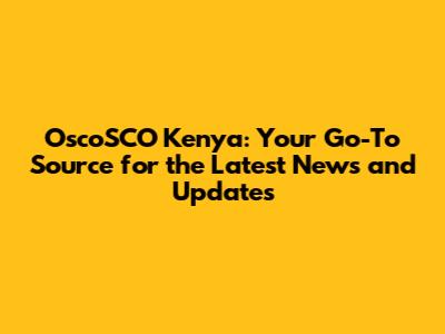 OscoSCO Kenya: Latest News And Updates