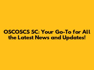 OSCOSCS SC: Latest News And Updates