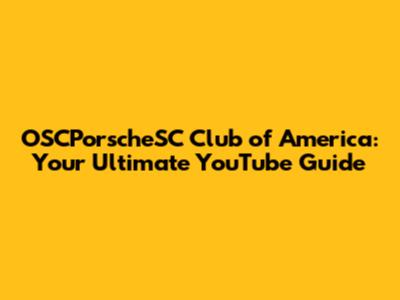 OSCPorscheSC Club Of America: Your Ultimate YouTube Guide
