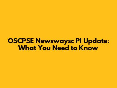 OSCPSE Newswaysc PI Update: What You Need To Know