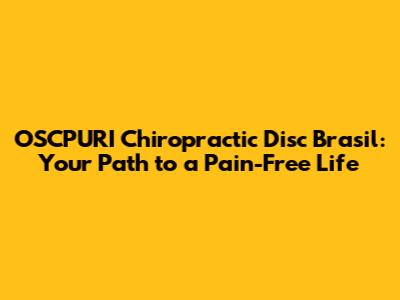 OSCPURI Chiropractic Disc: Your Guide To Back Pain Relief In Brazil