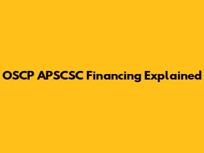 OSCSP APSCSC Financing Explained
