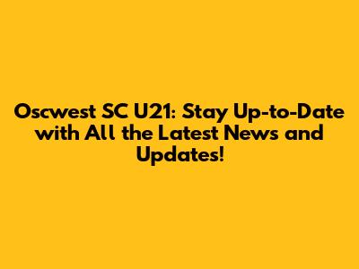 Oscwest SC U21: Latest News & Updates