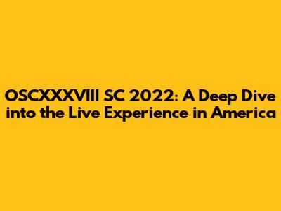 Hey everyone! Are you ready to dive deep into the world of OSCXXXVIII SC 2022? It was an absolute blast, especially for those of us here in America. The event was packed with incredible moments, cutting-edge technology, and some seriously inspiring people. This article is your all-access pass to the highlights, the behind-the-scenes action, and everything you need to know about the live experience. Letâs get started, shall we?