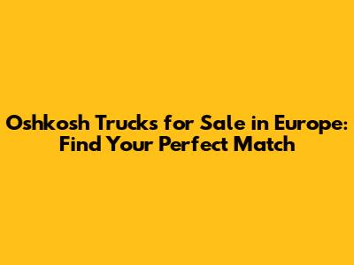 Where to Find Oshkosh Trucks for Sale in Europe