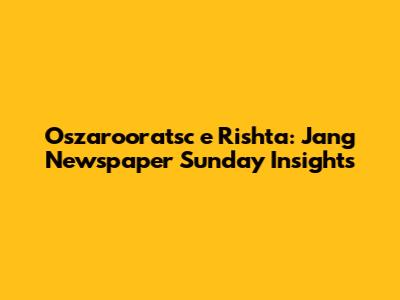 Oszarooratsc E Rishta: Jang Newspaper Sunday Insights