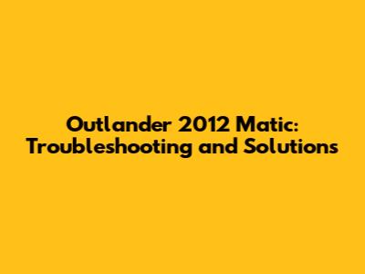 Outlander 2012 Matic Problems & Solutions