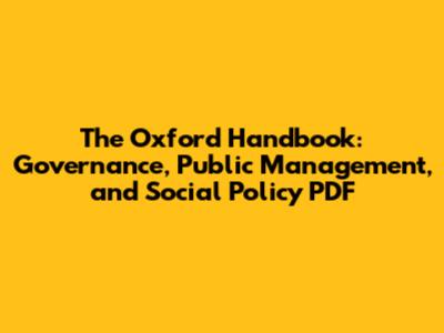 Oxford Handbook: Governance, Public Management, And Social Policy PDF