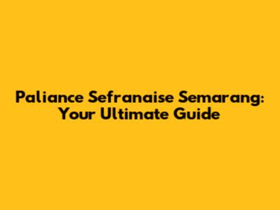 Paliance Sefranaise Semarang: The Ultimate Guide