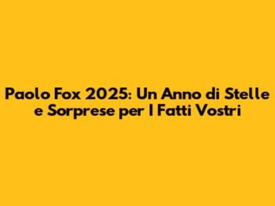 Ciao a tutti, appassionati di astrologia e fan di I Fatti Vostri! Siete pronti a scoprire cosa riserveranno le stelle nel 2025? Quest'anno, ci affidiamo alle previsioni del celebre Paolo Fox, l'astrologo più amato d'Italia, per svelare i segreti del futuro. In questo articolo, esploreremo a fondo le previsioni di Paolo Fox per il 2025, concentrandoci su come i diversi segni zodiacali vivranno l'anno, con particolare attenzione alle dinamiche che potrebbero influenzare le personalità coinvolte nel programma televisivo I Fatti Vostri. Analizzeremo i transiti planetari significativi, gli aspetti astrologici chiave e come questi potrebbero tradursi in opportunità e sfide per ciascun segno. Che siate curiosi di sapere cosa vi aspetta in amore, nel lavoro, o nella salute, preparatevi a un viaggio affascinante attraverso l'oroscopo del 2025, guidati dalla sapiente voce di Paolo Fox e dal suo sguardo attento sul mondo astrologico. Quindi, mettetevi comodi, prendete appunti e preparatevi a scoprire cosa le stelle hanno in serbo per voi nel 2025! Le previsioni di Paolo Fox sono sempre molto attese, e con questo approfondimento cercheremo di offrirvi una panoramica completa e dettagliata, adatta sia ai principianti che agli esperti di astrologia. Non perdete l'occasione di pianificare al meglio il vostro anno, sfruttando al massimo le energie positive e preparandovi ad affrontare con coraggio le eventuali difficoltà . Questo sarà il vostro anno, preparatevi a brillare!