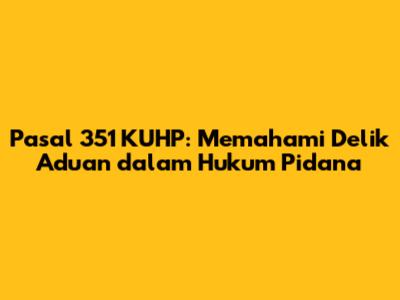 Hai guys! Kalian penasaran gak sih tentang Pasal 351 KUHP dan statusnya sebagai delik aduan? Banyak banget nih pertanyaan seputar hukum pidana yang bikin kita mikir keras. Nah, kali ini, kita bakal kupas tuntas mengenai Pasal 351 KUHP, apakah termasuk dalam kategori delik aduan atau bukan. Yuk, simak penjelasannya!