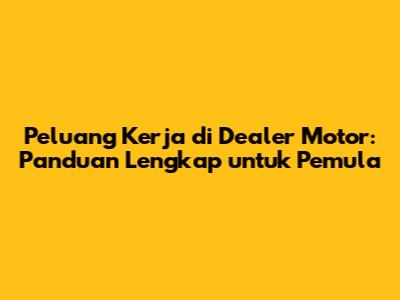 Kata Kunci: Peluang kerja di dealer motor, gaji dealer motor, prospek kerja dealer motor, pekerjaan di dealer motor, karir dealer motor, tips sukses dealer motor.