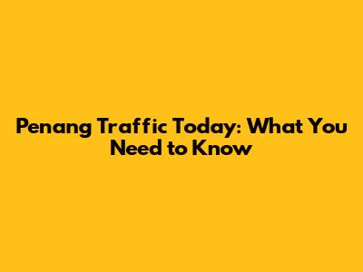 Penang Traffic Today: What You Need To Know