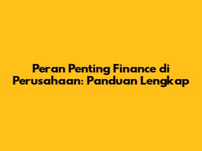 Peran Penting Finance Di Perusahaan: Panduan Lengkap