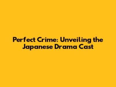 Perfect Crime: Unveiling The Japanese Drama Cast