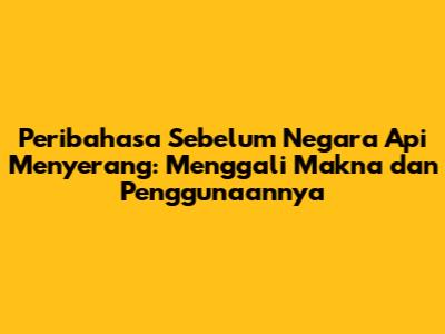 Peribahasa Sebelum Negara Api Menyerang: Memahami & Menggunakan