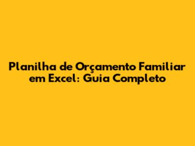 Planilha De Orçamento Familiar Em Excel: Guia Completo