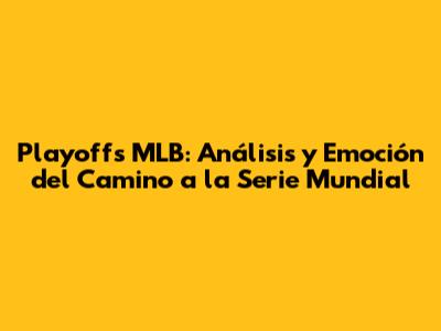 Playoffs MLB: Análisis Y Emoción Del Camino A La Serie Mundial