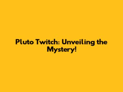 Pluto Twitch: Unveiling The Mystery!