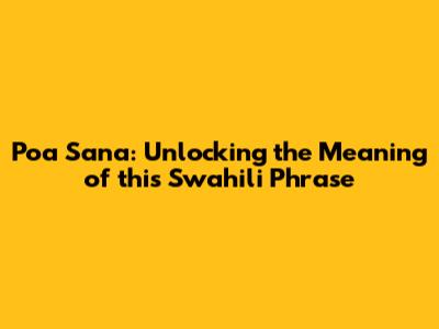 Poa Sana: Unlocking The Meaning Of This Swahili Phrase