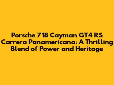 The Porsche 718 Cayman GT4 RS and the Carrera Panamericana are a captivating combination that embodies the passion, history, and excitement of motorsport. The GT4 RS, with its track-honed performance and naturally aspirated engine, is perfectly suited to tackle the challenging terrain of the Carrera Panamericana. This pairing not only celebrates Porsche's rich racing heritage but also provides a thrilling and unforgettable experience for drivers and enthusiasts alike. Whether you're a seasoned racer or simply a fan of high-performance cars, the GT4 RS Carrera Panamericana connection is sure to ignite your passion for driving. It's a reminder that cars are more than just machines; they are objects of desire, symbols of freedom, and vessels of adventure. The Porsche 718 Cayman GT4 RS is a truly special car, and when combined with the legendary Carrera Panamericana, it becomes something truly extraordinary. So, next time you see a GT4 RS, remember its connection to this historic race and appreciate the blend of performance, heritage, and adrenaline that it represents. Keep the passion alive!