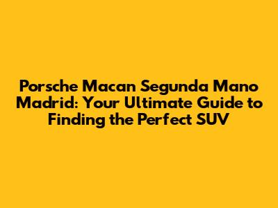 Porsche Macan Segunda Mano In Madrid: Your Ultimate Guide