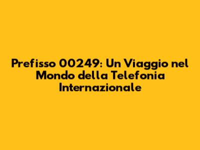 Prefisso 00249: A Quale Nazione Appartiene?
