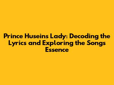 Prince Husein's 'Lady': A Deep Dive Into Lyrics & Meaning