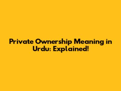 Private Ownership Meaning In Urdu: Explained!