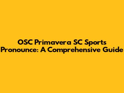 Pronouncing OSC Primavera SC: A Sports Fan's Guide