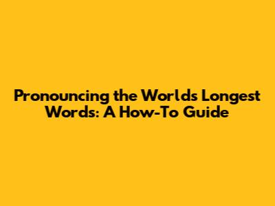 Pronouncing The World's Longest Words: A How-To Guide