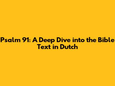 Psalm 91: A Deep Dive Into The Bible Text In Dutch