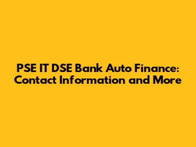 PSE IT DSE Bank Auto Finance: Contact Info & More