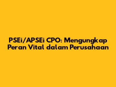 PSEi/APSEi CPO: Pahami Peran Pentingnya Di Perusahaan!